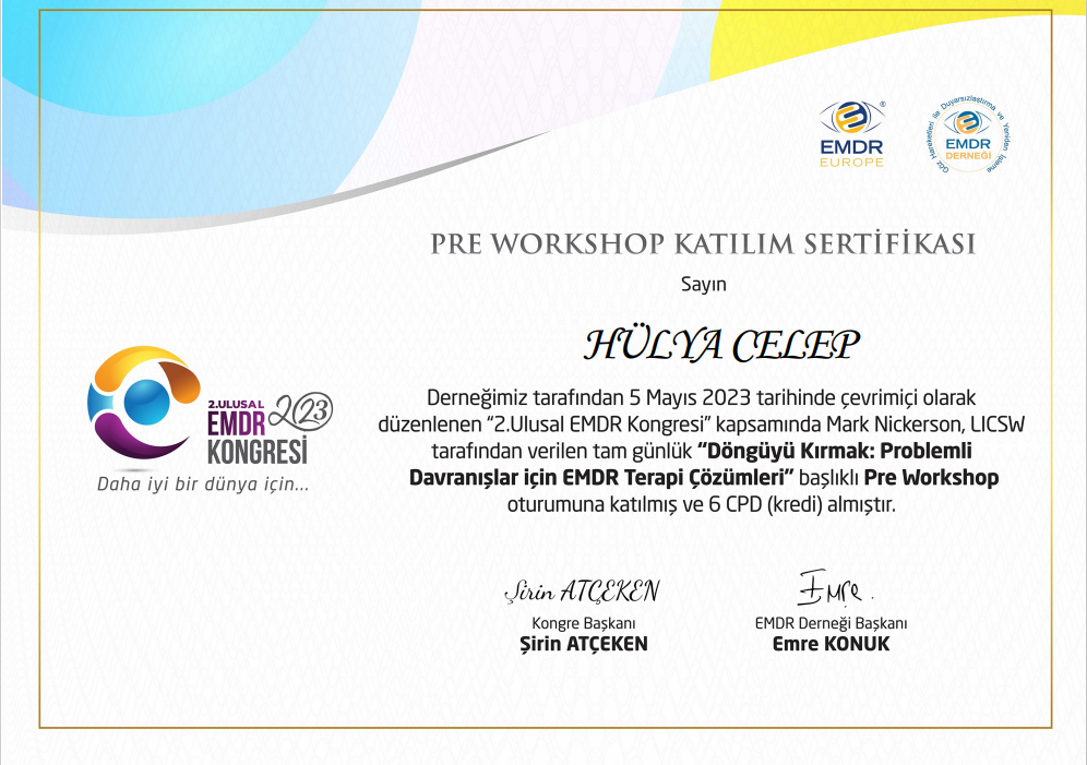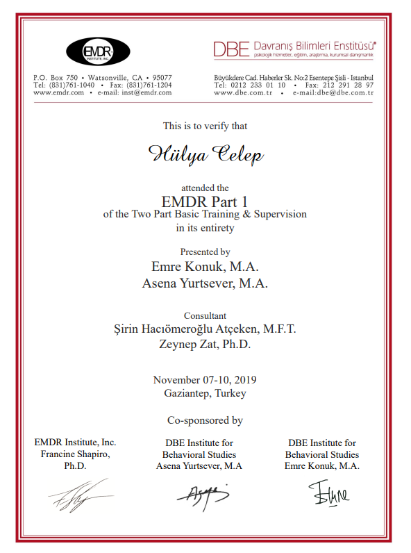 - I.Düzey EMDR Uygulayıcı Eğitimi EMDR Derneği Emre Konuk Asena Yurtsever 2019