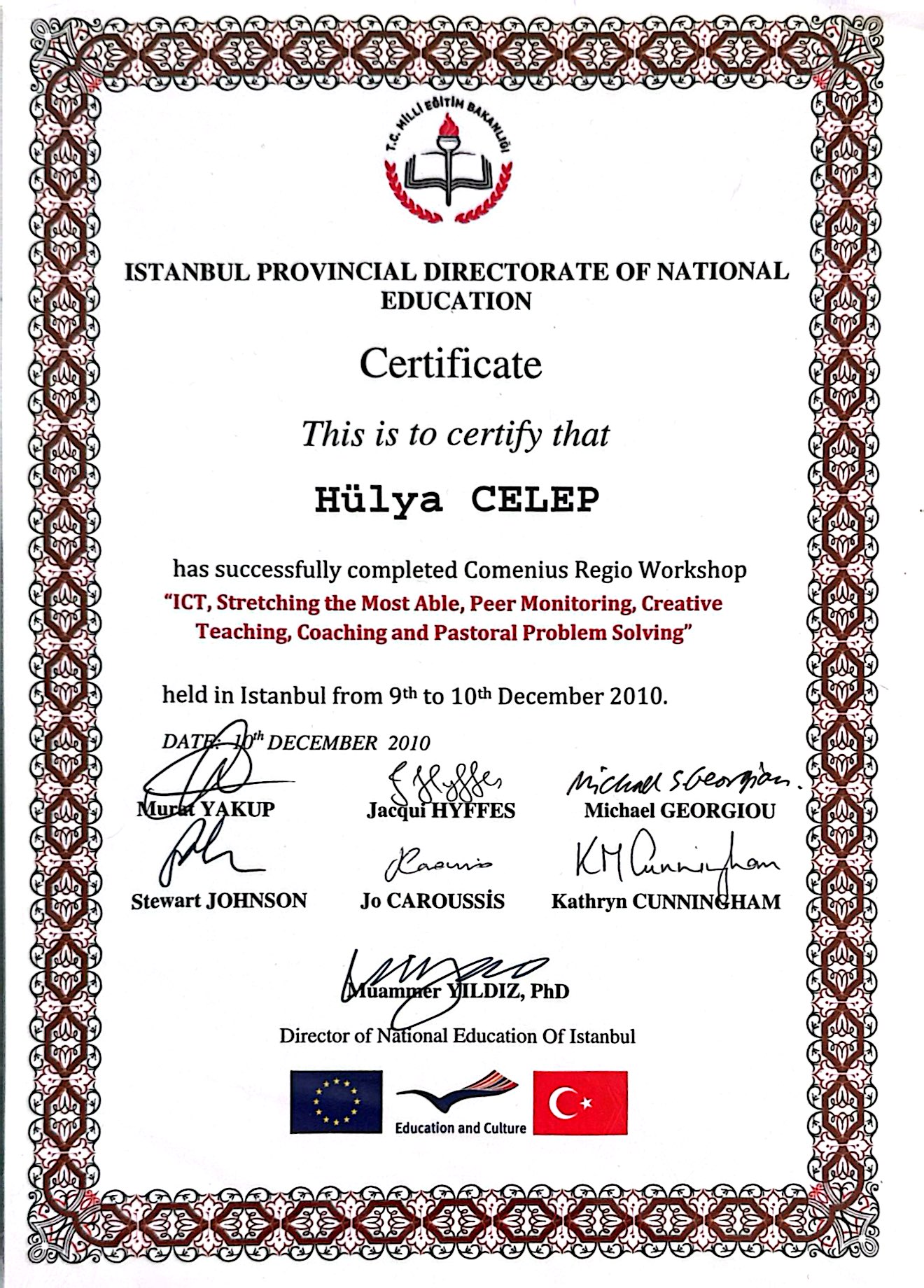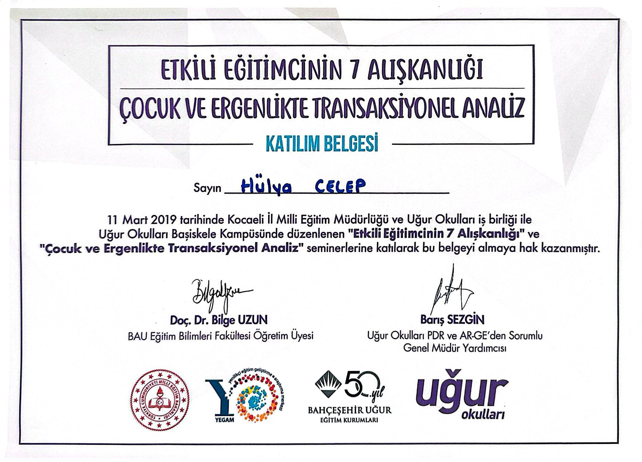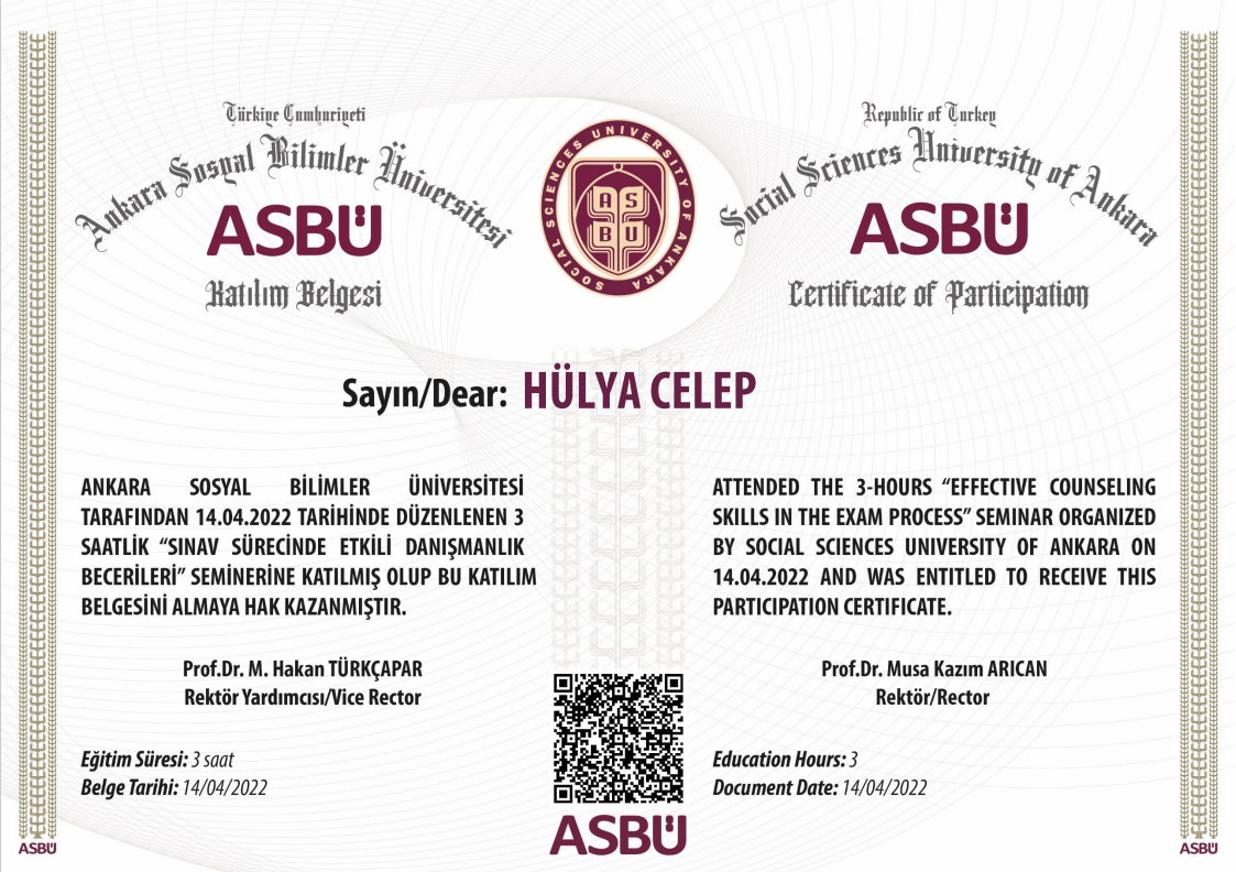 - Aile Danışmanlığı Eğitimi Sertifika Programı Hasan Kalyoncu Üniversitesi , 2012
