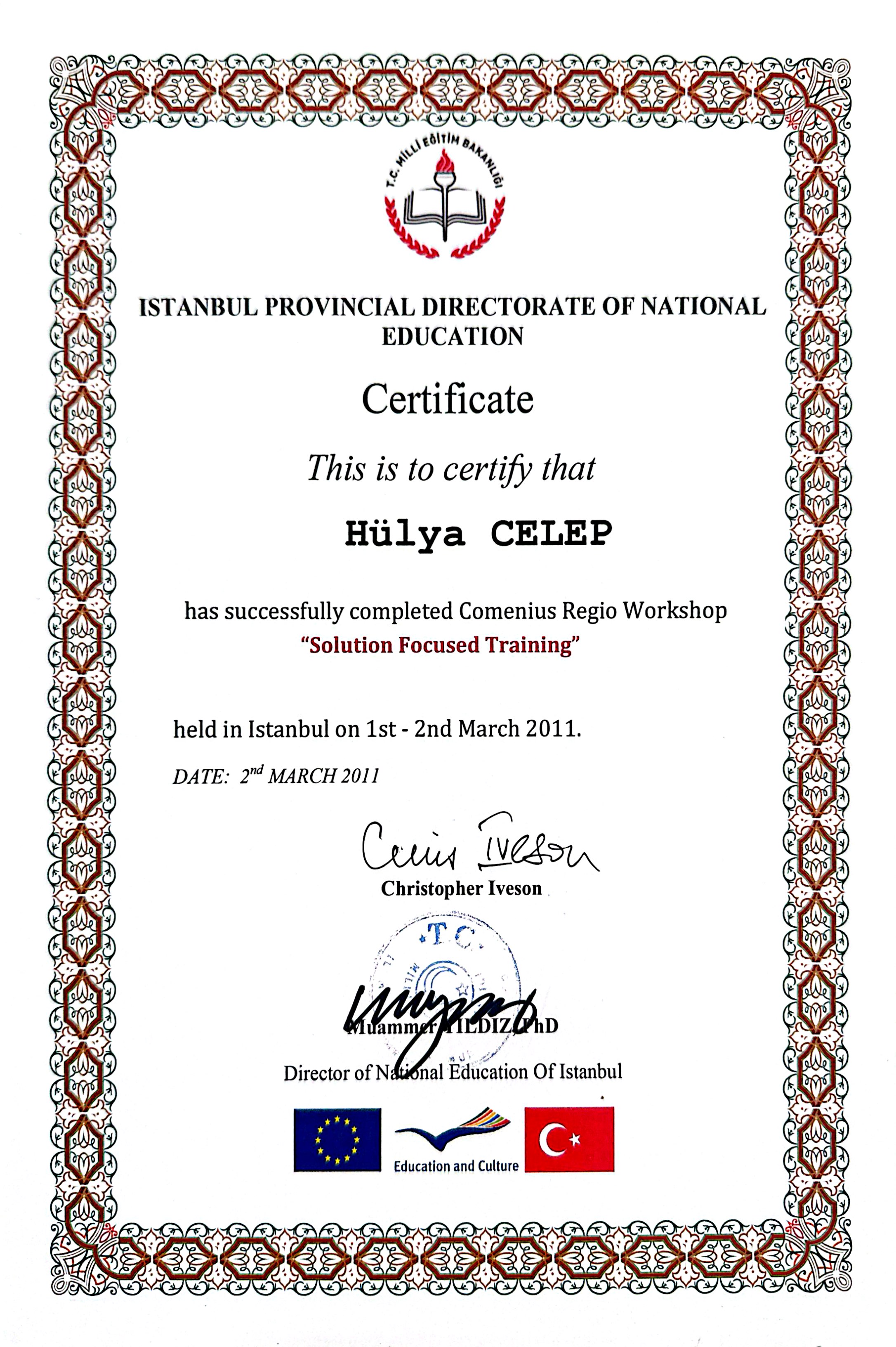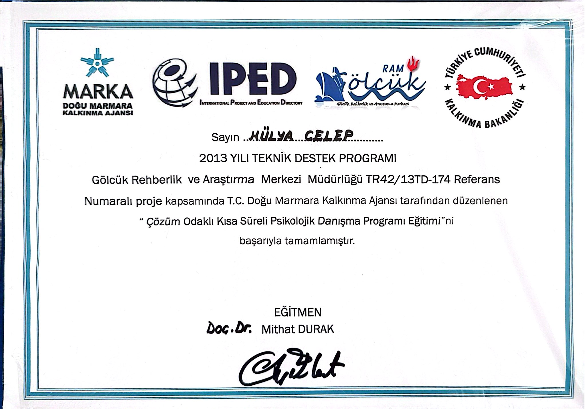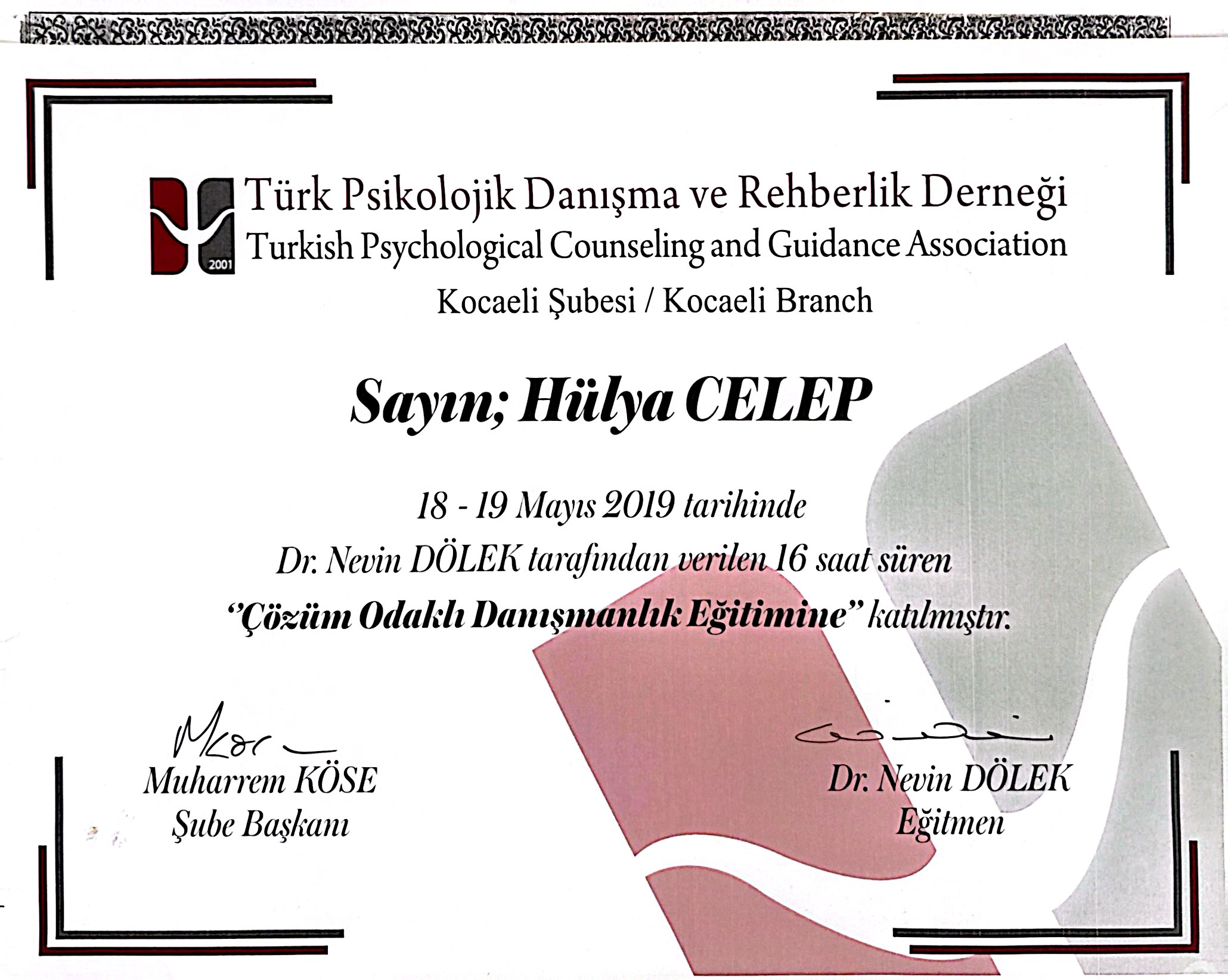 - Çözüm Odaklı Danışmanlık Eğitimi (Dr. Nevin Dölek) 2019