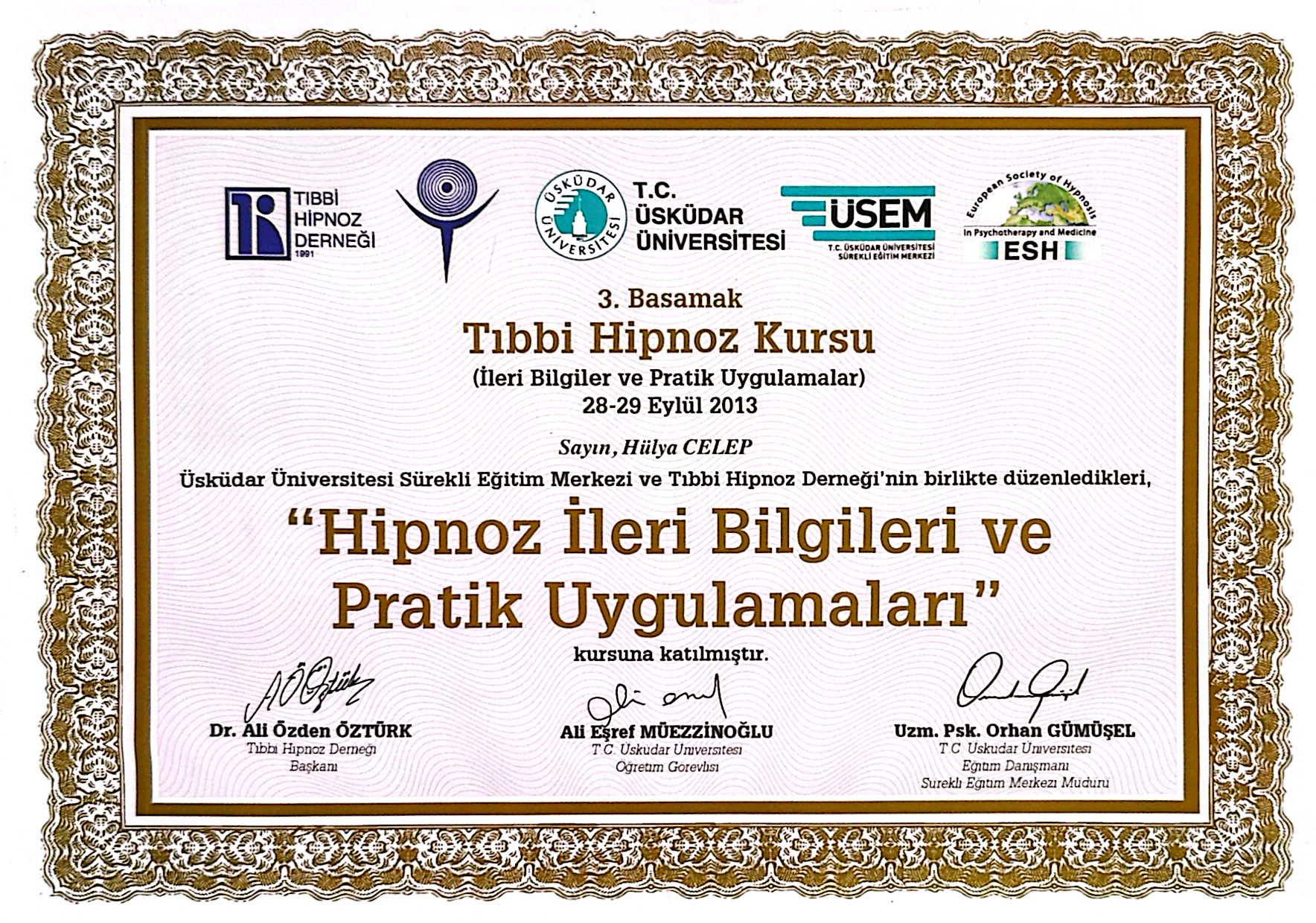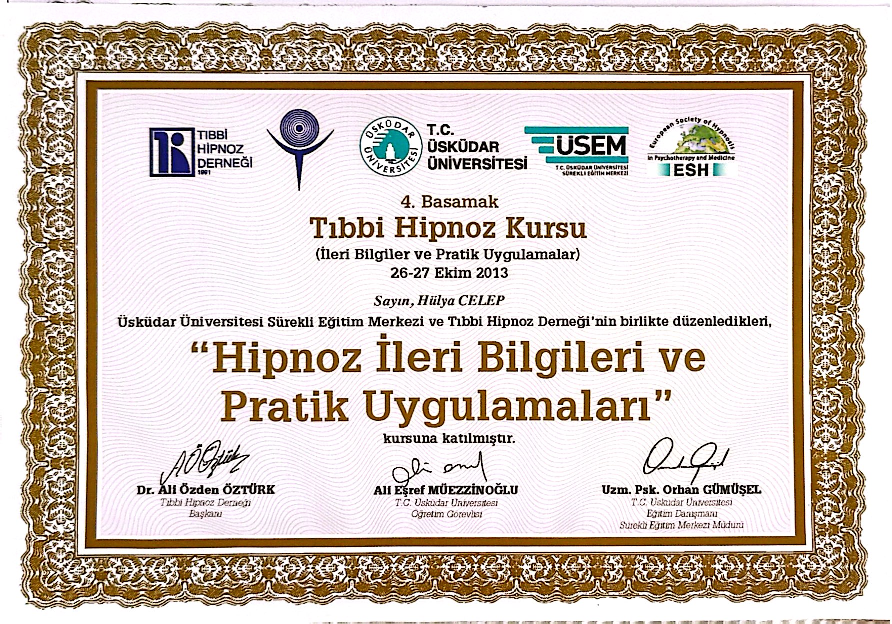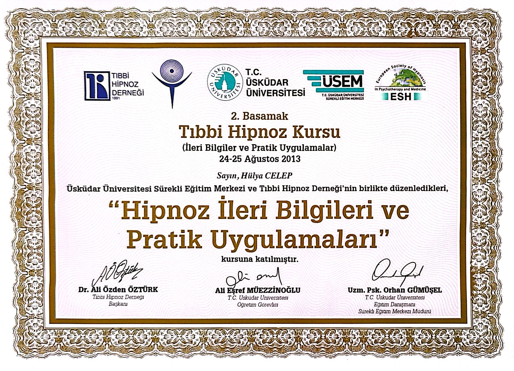 - Tıbbi Hipnoz Egitimi Sertifikası Tıbbi Hipnoz Derneği - Üsküdar Üniversitesi 2014
