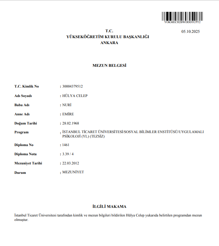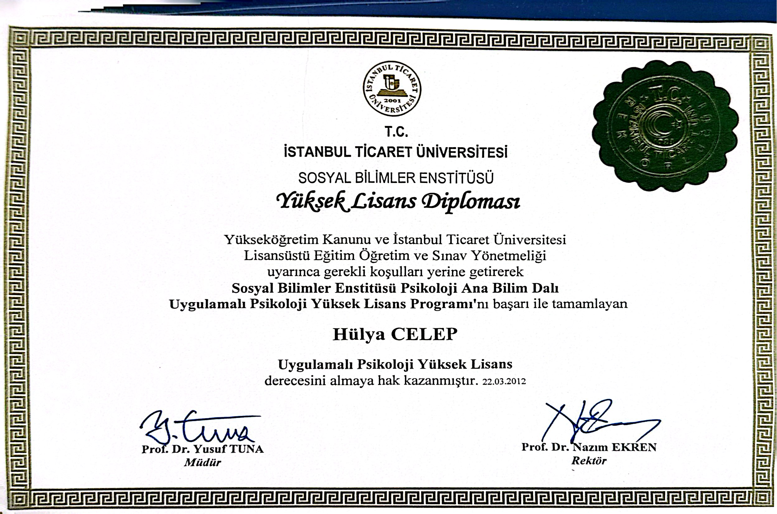 - İstanbul Ticaret Üniversitesi - Uygulamalı Psikoloji Yüksek Lisans