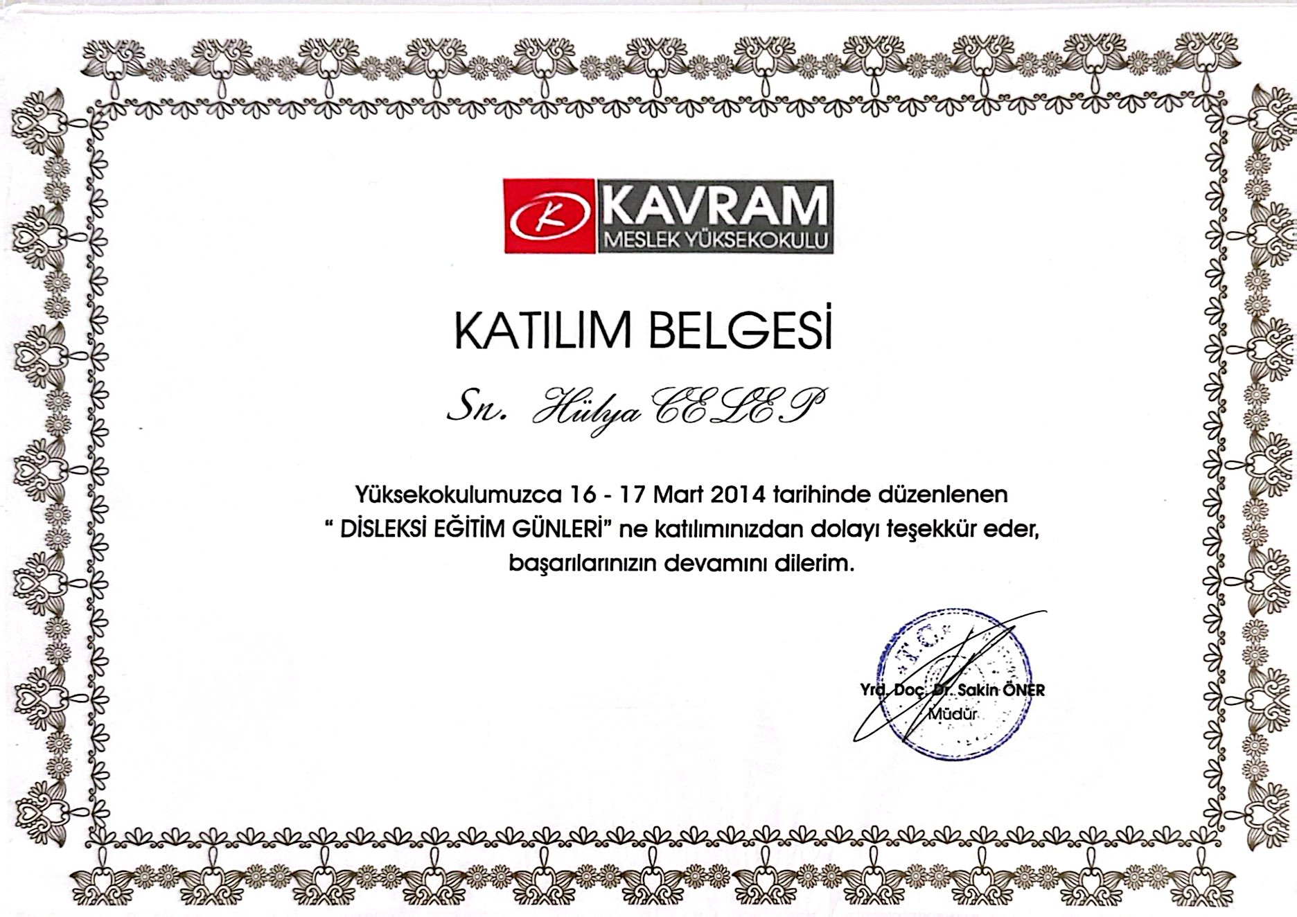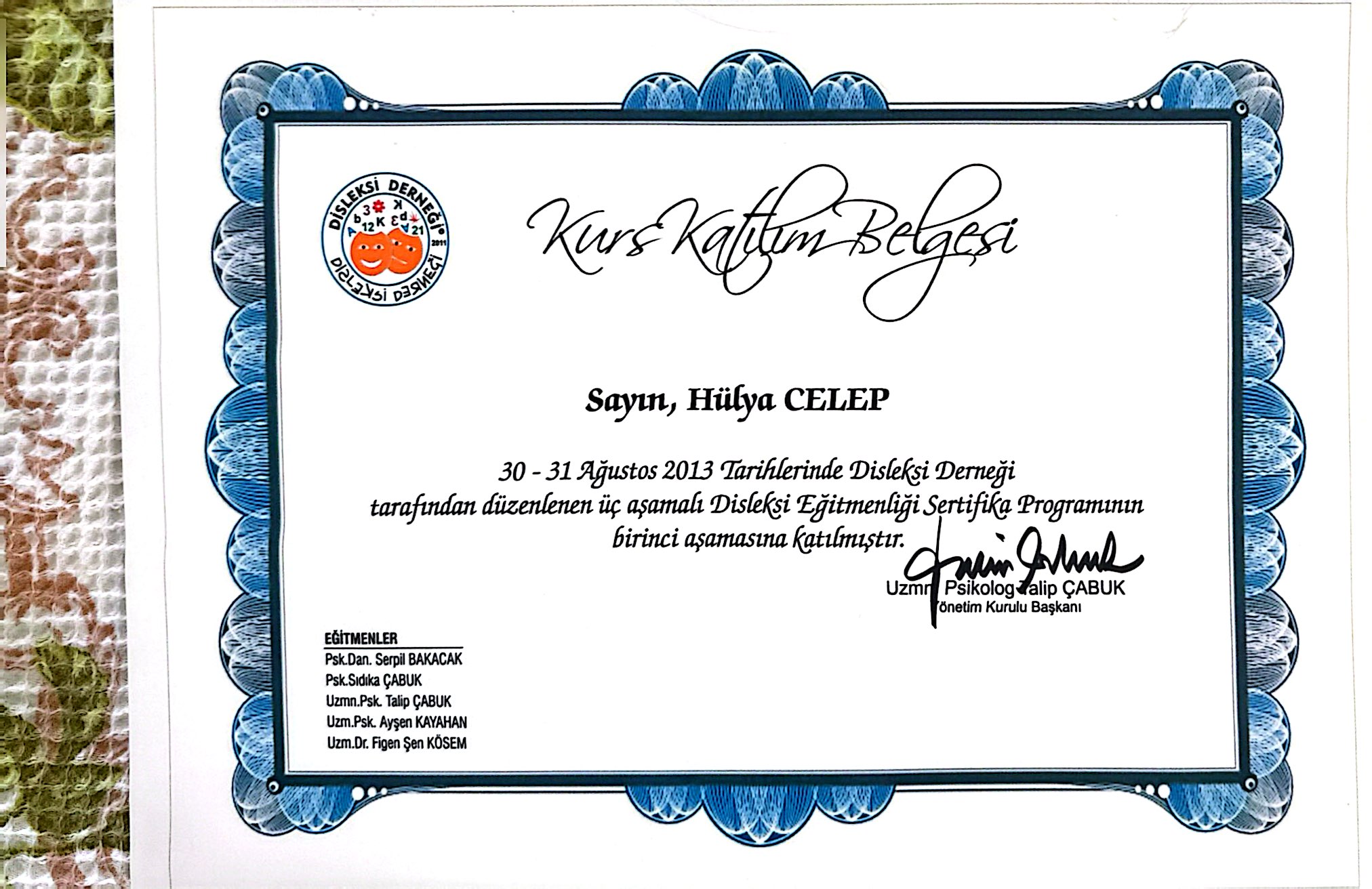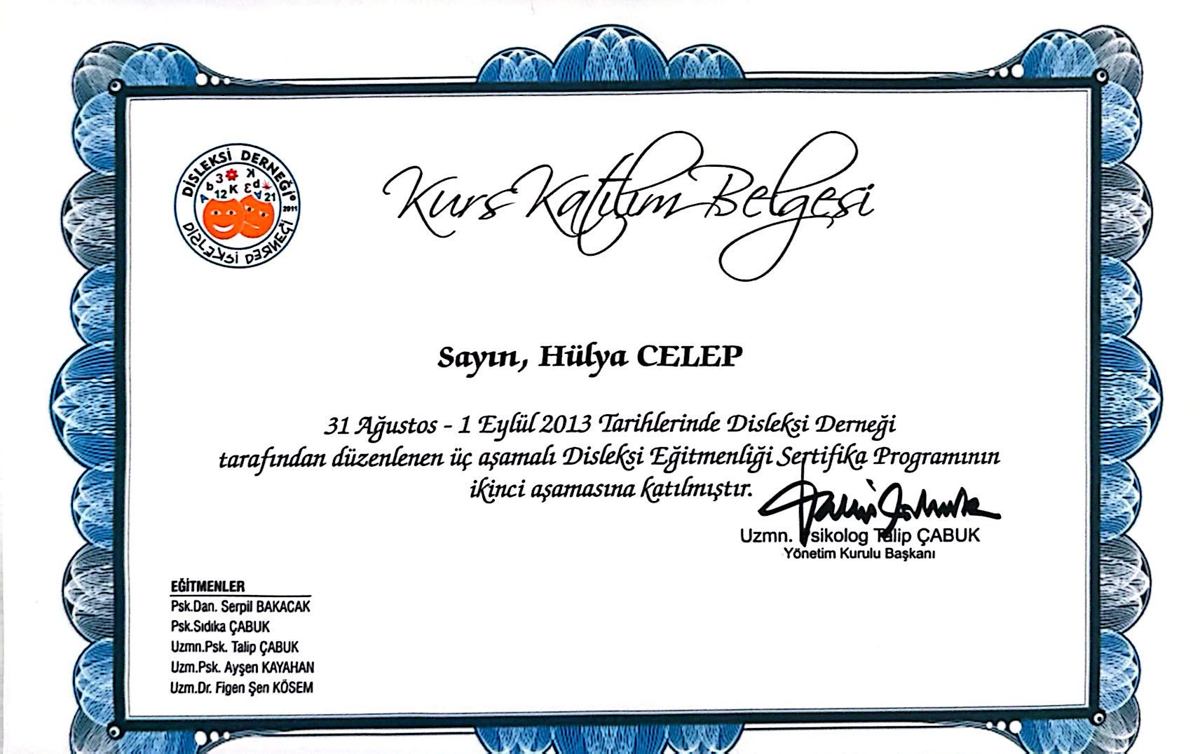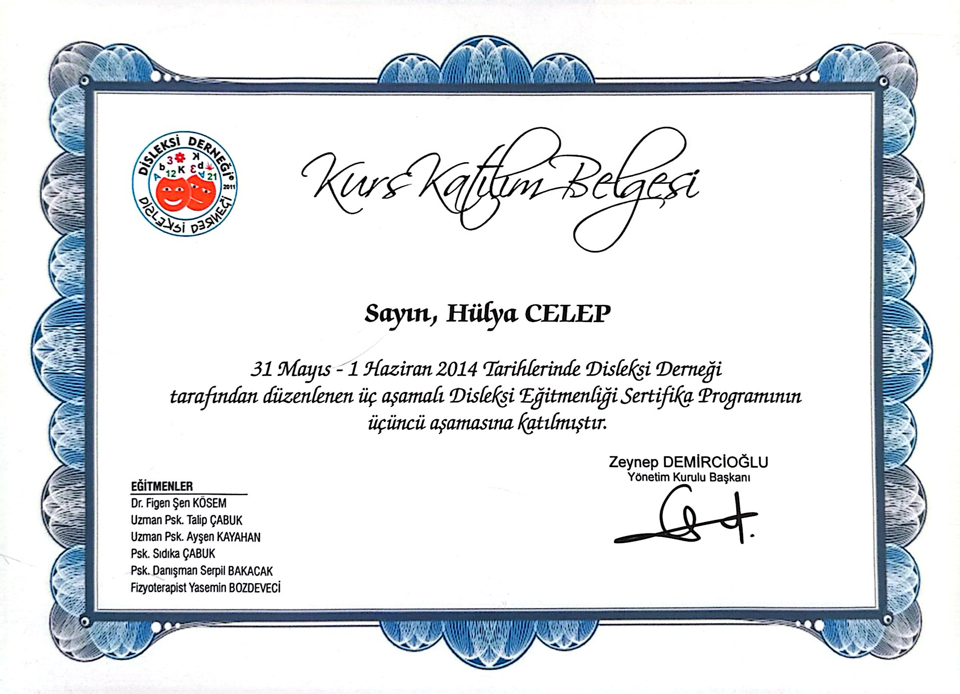 - Özel Öğrenme Güçlüğü Eğitici Sertifikası Disleksi Derneği , 2014