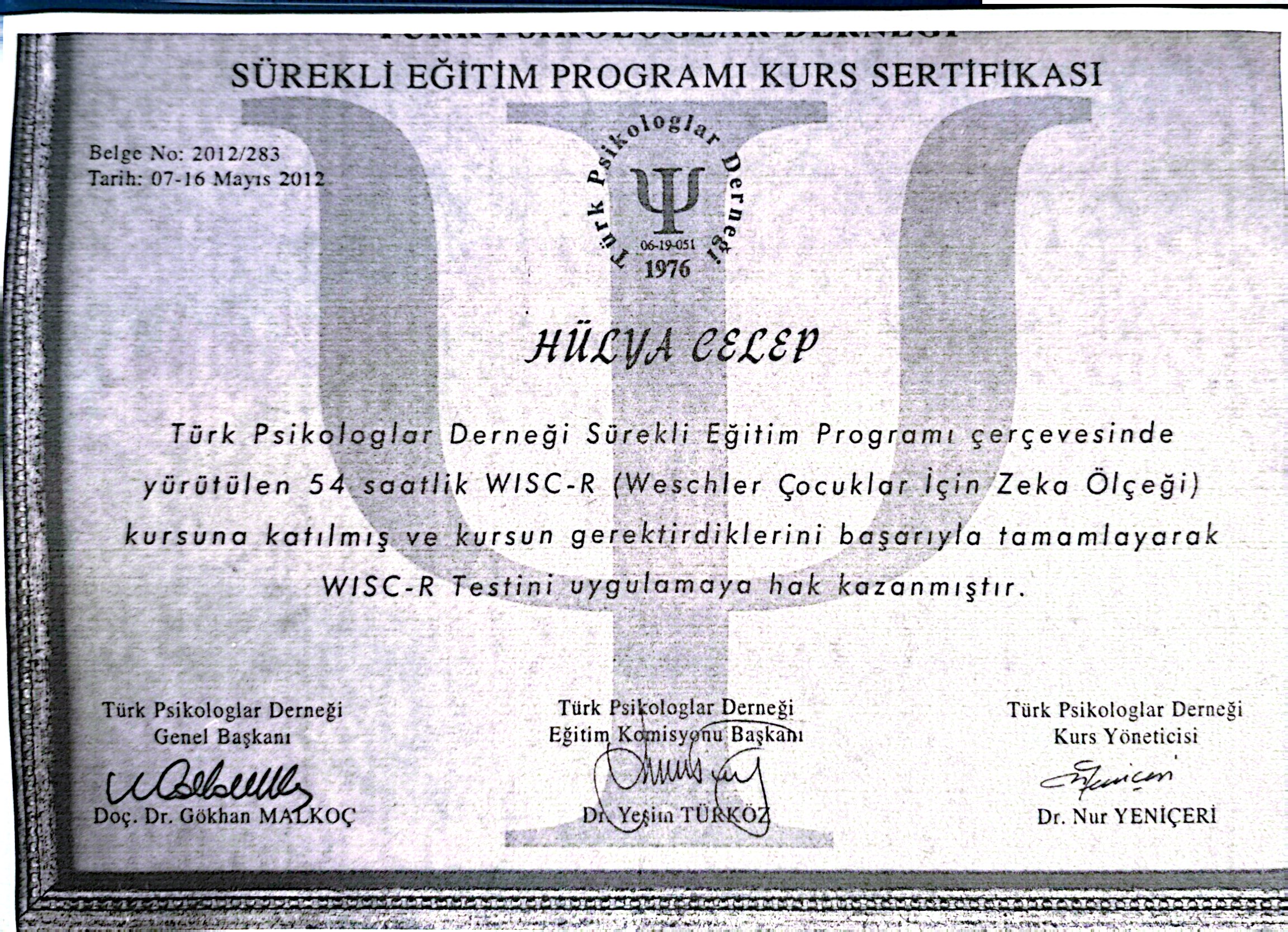 - Wisc-R Uygulayıcı Eğitimi Türk Psikologlar Derneği , 2011