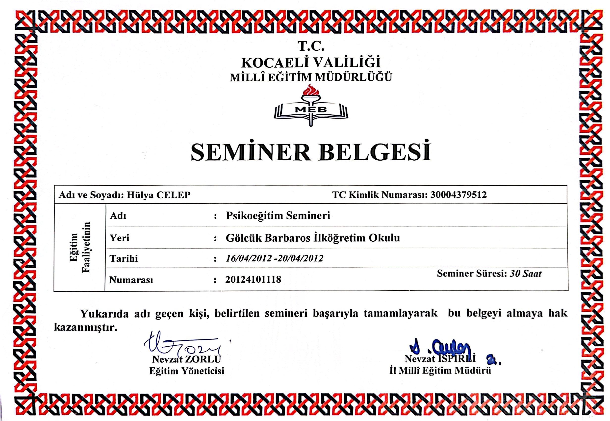 - Psikososyal Eğitim Programı Uygulayıcısı Milli Eğitim Bakanlığı , 2012