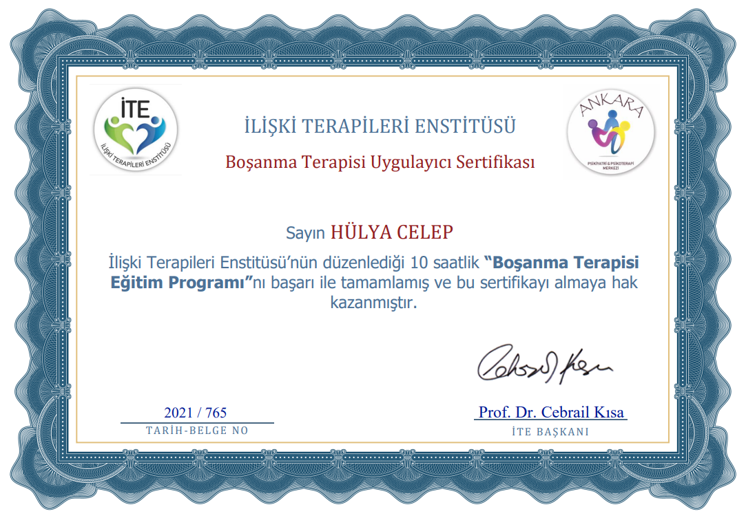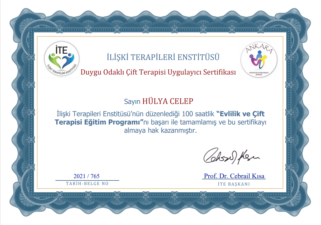 - Duygu Odaklı Çift Terapisi Eğitimi (Prof. Dr.Cebrail Kısa) 2021