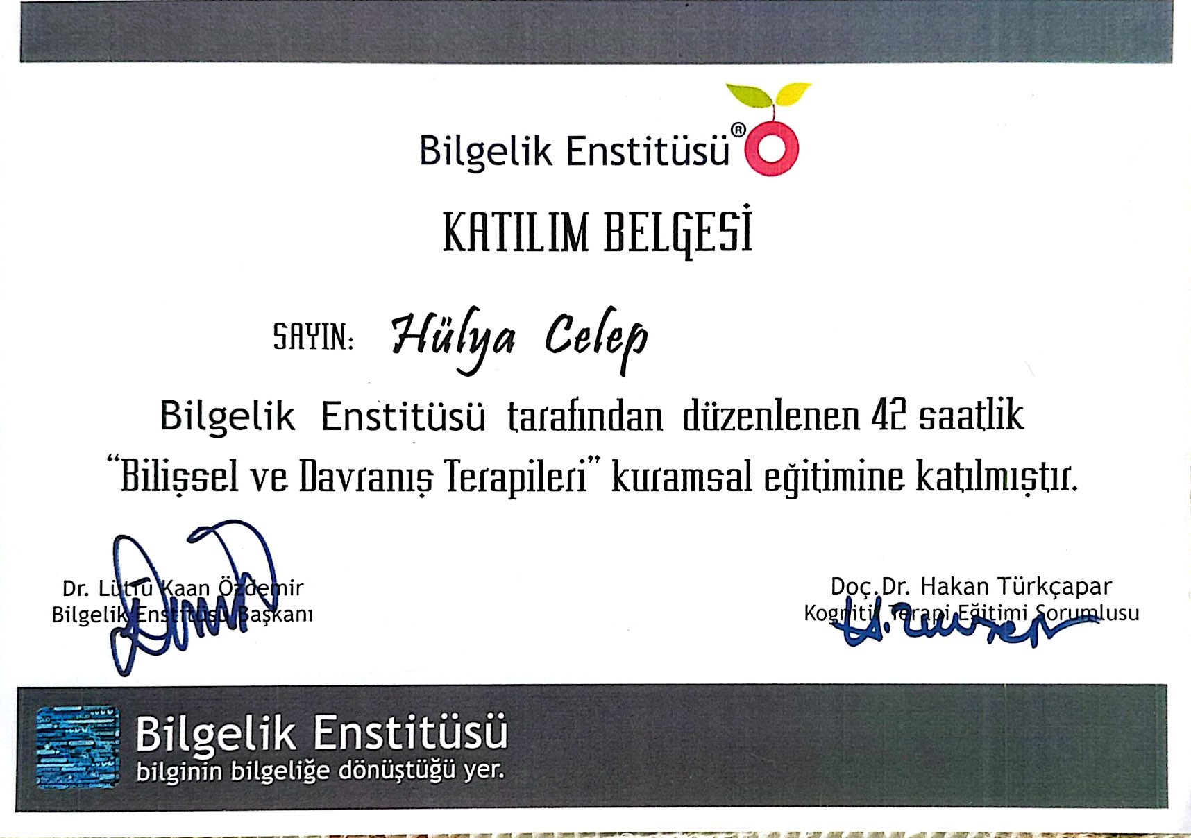 - Bilişsel ve Davranış Terapileri Eğitimi Prof. Dr. Hakan Türkçapar , 2010