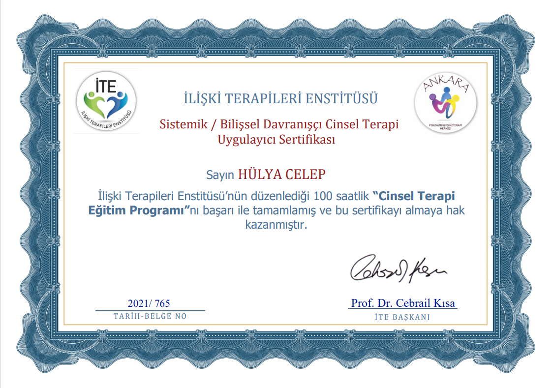 - Sistemik Bilişsel / Davranışçı Cinsel Terapi Eğitim (Prof. Dr. Cebrail Kısa)2021