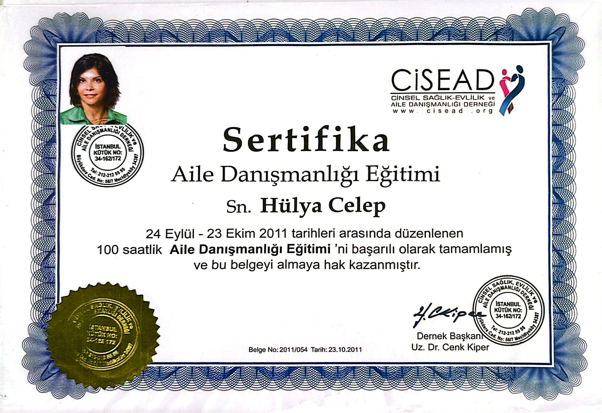 - Aile Danışmanlığı Eğitimi Sertifika Programı CİSEAD , 2011