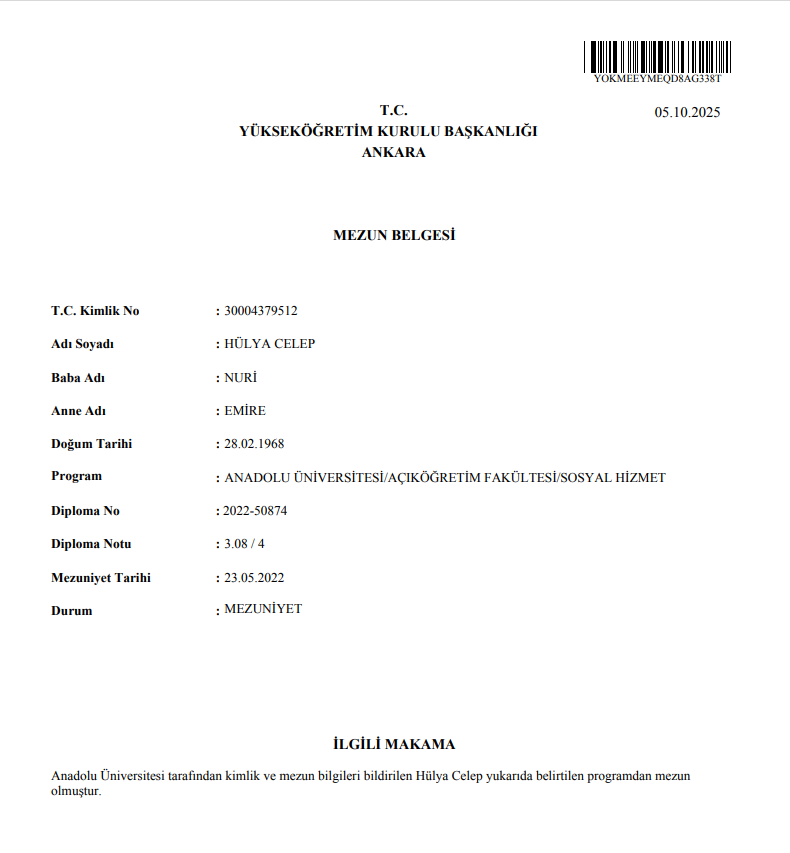 - Anadolu Üniversitesi AÖF - Sosyal Hizmet Lisans