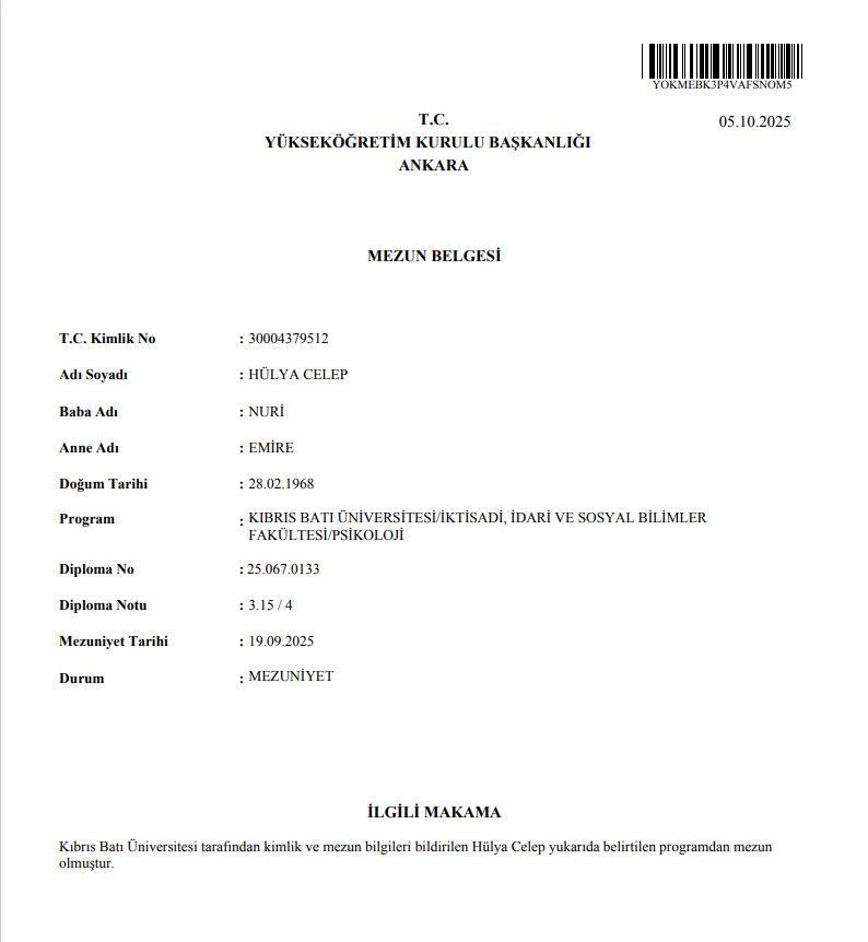 - Kıbrıs Batı Üniversitesi - Psikoloji Lisans