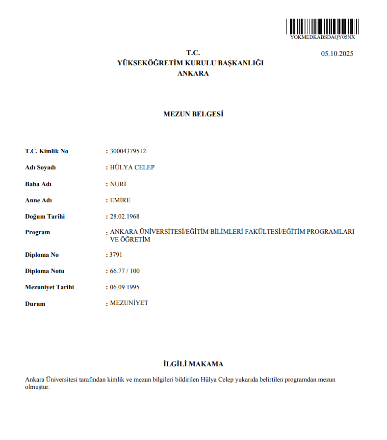 - Ankara üniversitesi Eğitim Bilimleri Fakültesi EPÖ Lisans